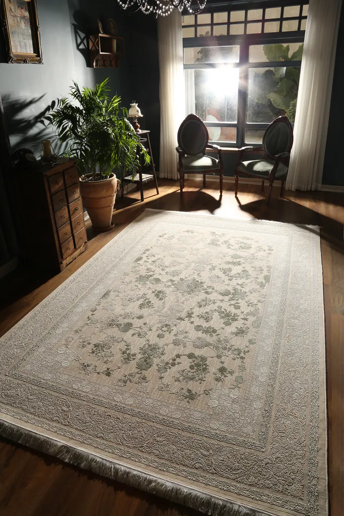 فرش لیانا صدفی سبز اکرلیک 1200 شانه برجسته