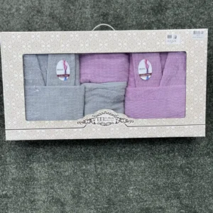 حوله ست یک نفره طرح هارمونی با ۶ تیکه که شامل: حوله تن پوش، حوله استخری، یک جفت دمپایی، حوله دستی می باشد.