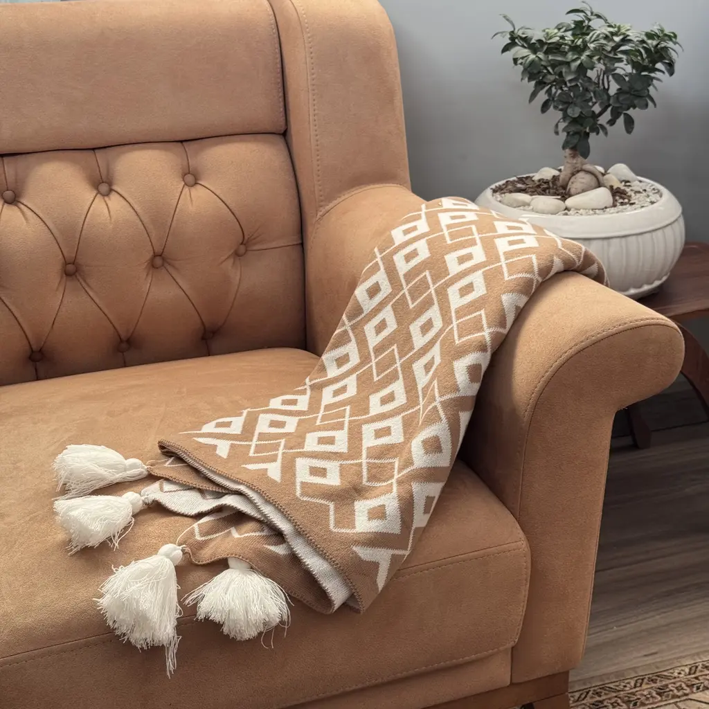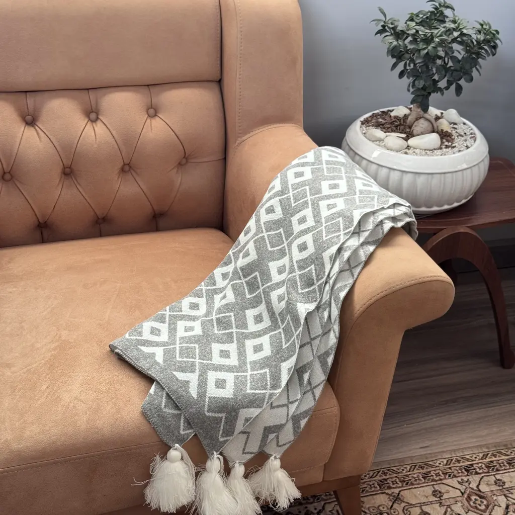 شال مبل طرح لوزی، اکسسوری جذابی است که با یک حرکت، ظاهر پذیرایی شما را از سادگی به چیدمانی ژورنالی تبدیل میکند. این محصول با بافت پلی استر باکیفیت و منگولههای تزئینی (Tassels)، هم به عنوان پتو و هم به عنوان اکسسوری مبل و تخت کاربرد دارد.