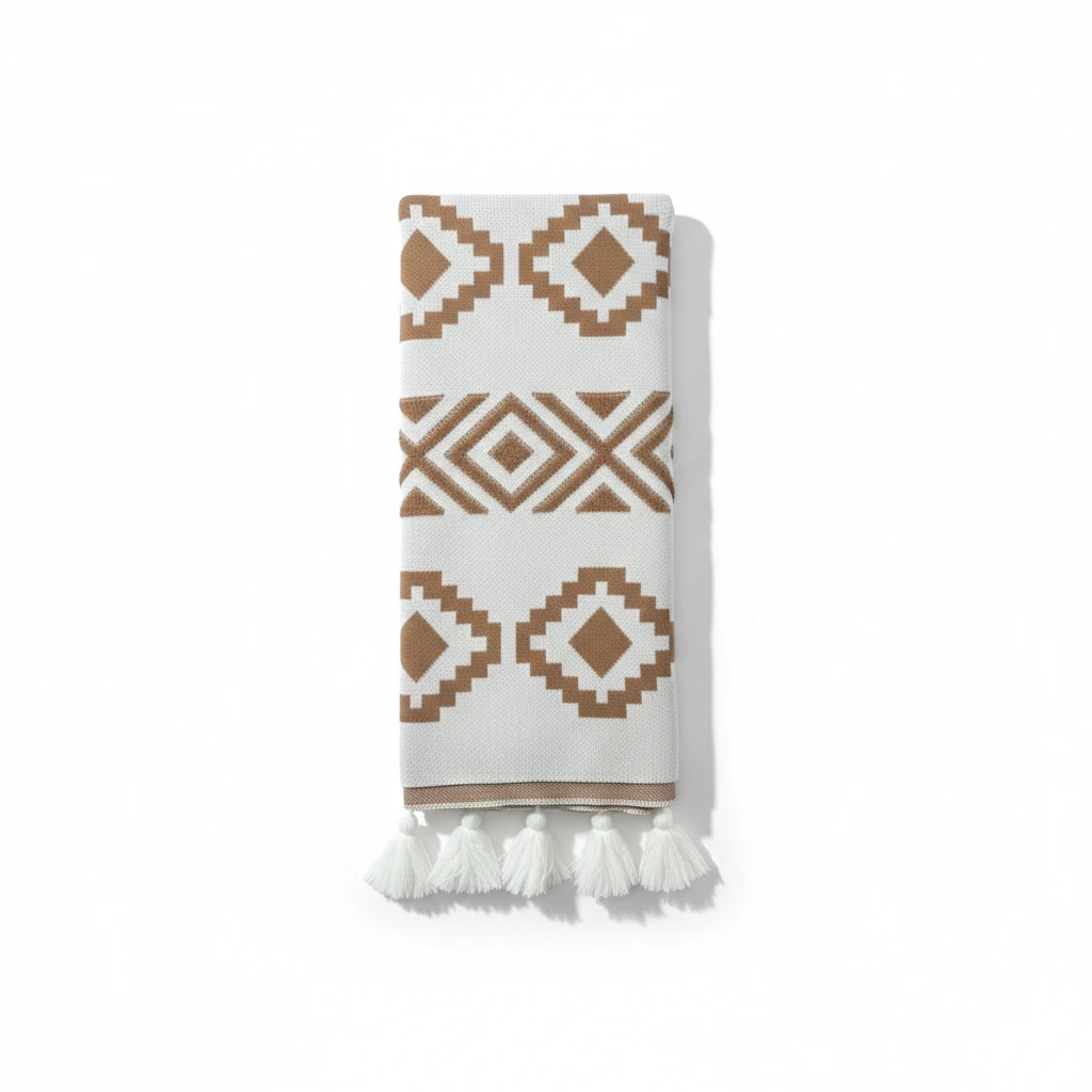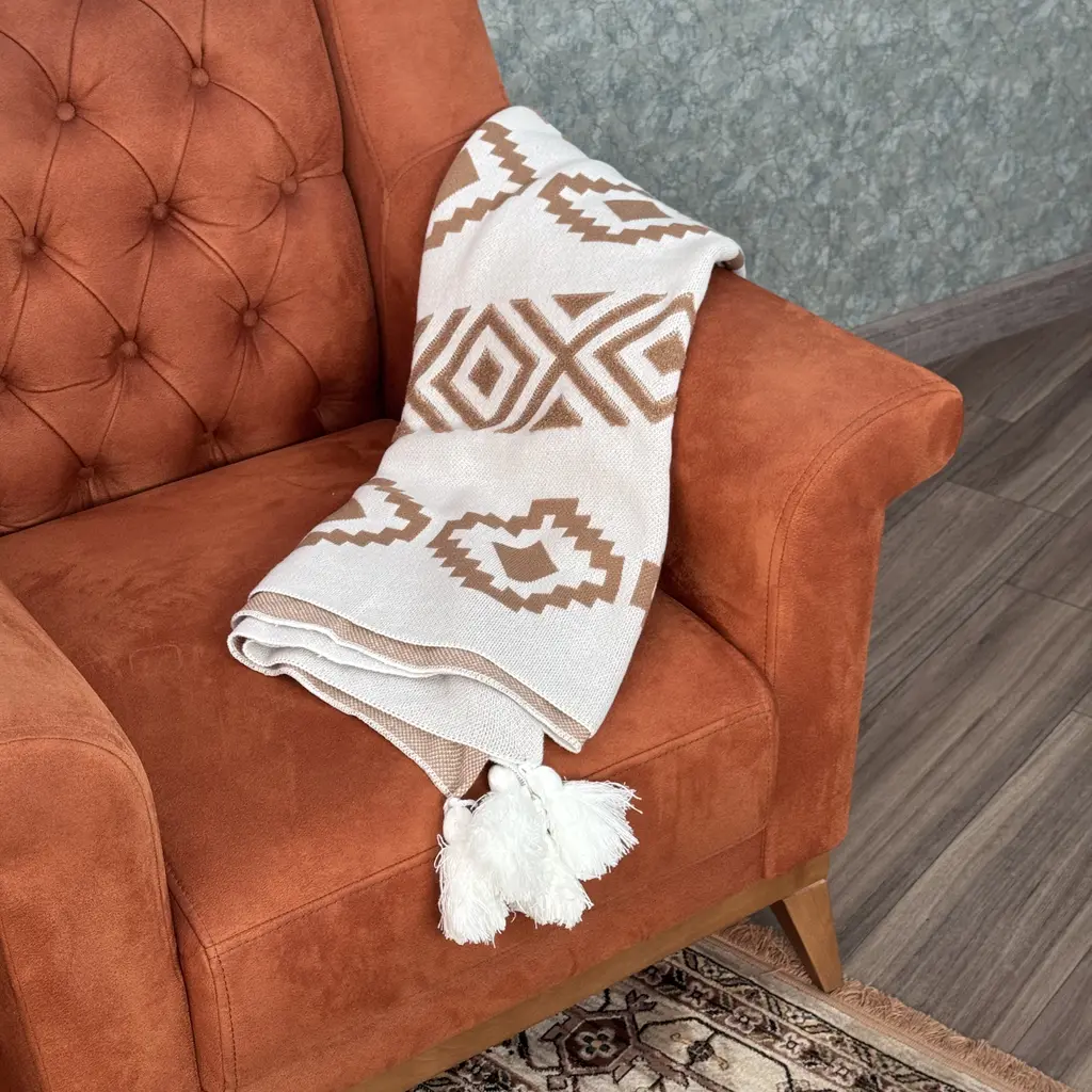 شال مبل پانچی، ترکیبی هوشمندانه از هنر بافت و کارایی است. این محصول با طرح هندسی قهوهای روی زمینه کرم/سفید و منگولههای دستدوز، به عنوان یک روانداز لطیف در شبهای خنک یا یک اکسسوری لوکس روی تختخواب، جلوهای خاص به خانهتان میبخشد.