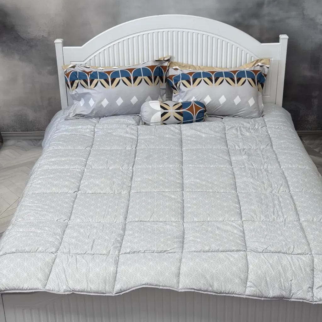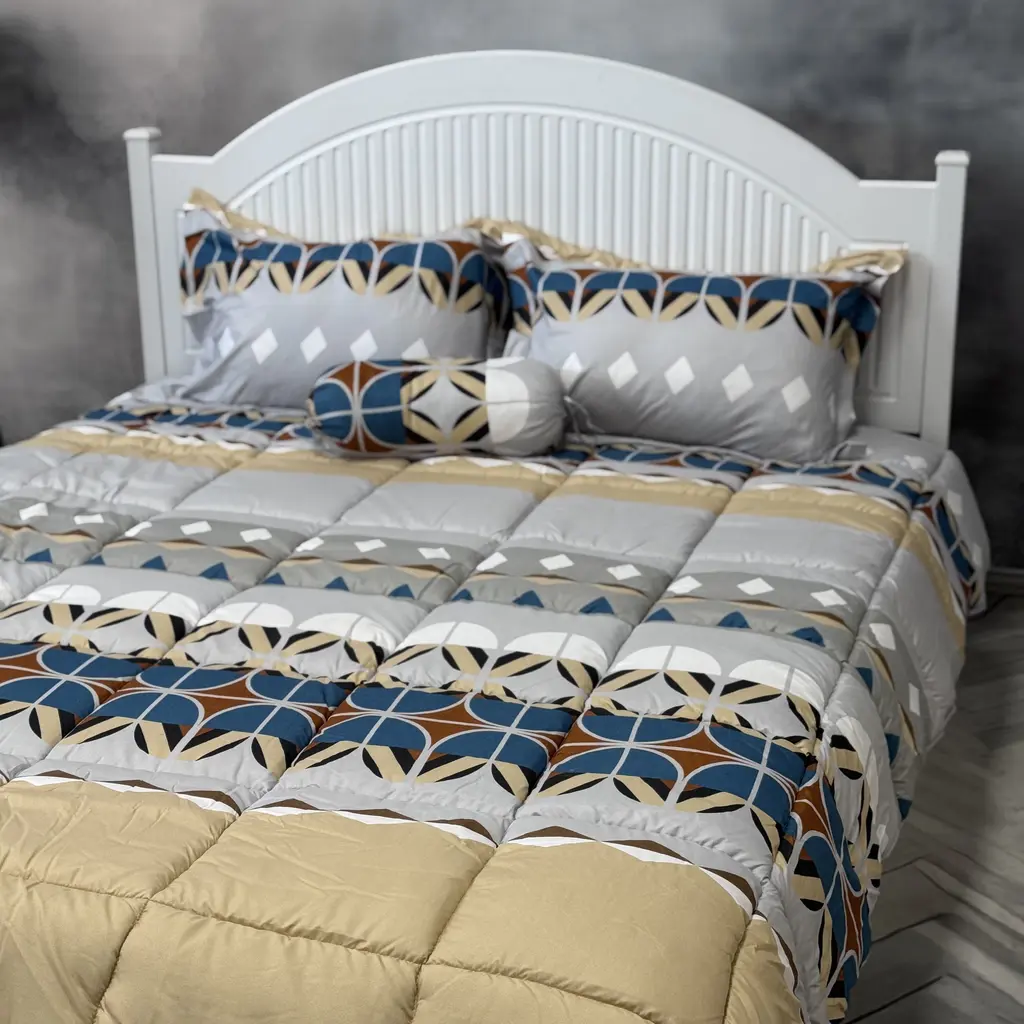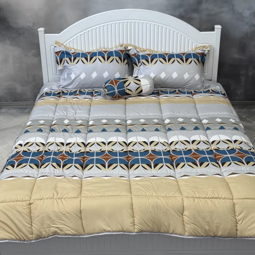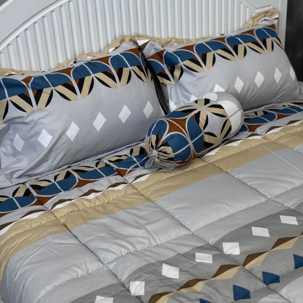 این سرویس شامل 7 تکه (4 روبالشتی، یک لحاف، یک ملحفه کشدار و یک متکا) است.