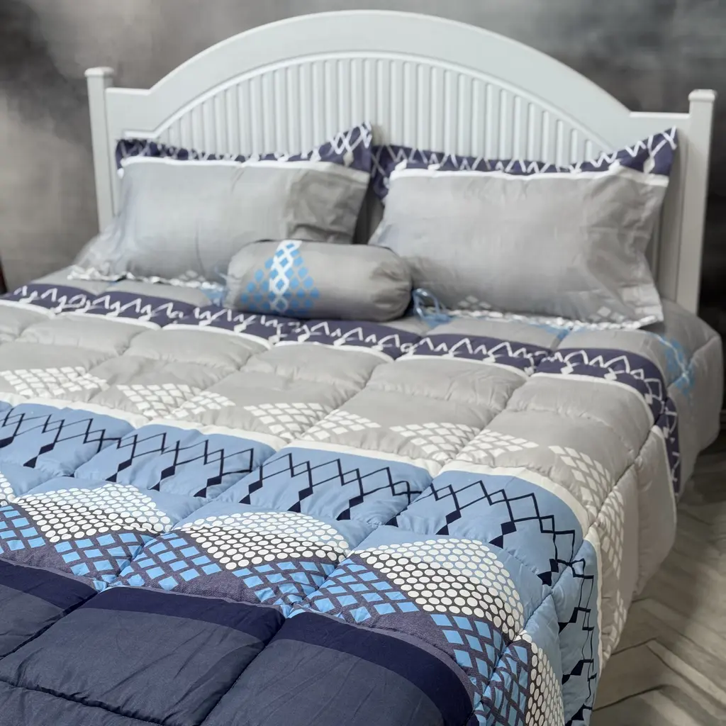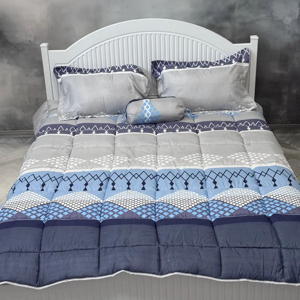 این سرویس شامل 7 تکه (4 روبالشتی، یک لحاف، یک ملحفه کشدار و یک متکا) است.
