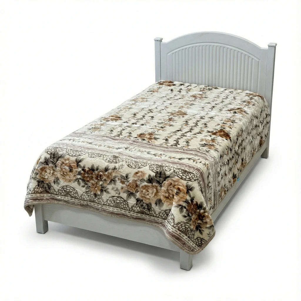 پتو 1 نفره زمستانه خارجی دو رو طرح کرم گلبهی